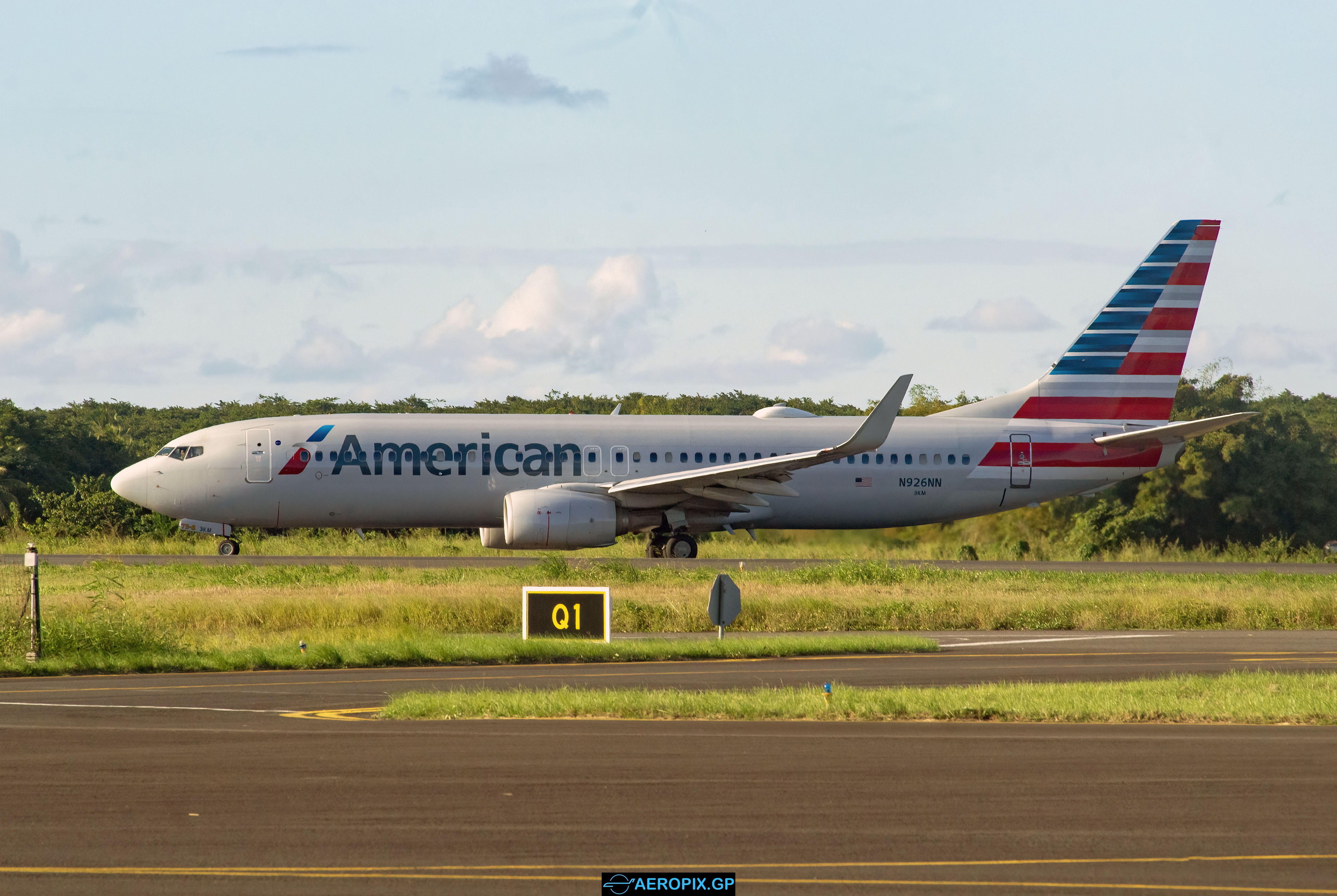 Boeing 737-800 d’ American Airlines (N926NN) à l’arrivée à l’aéroport Maryse Condé de Guadeloupe le 28 décembre 2024.